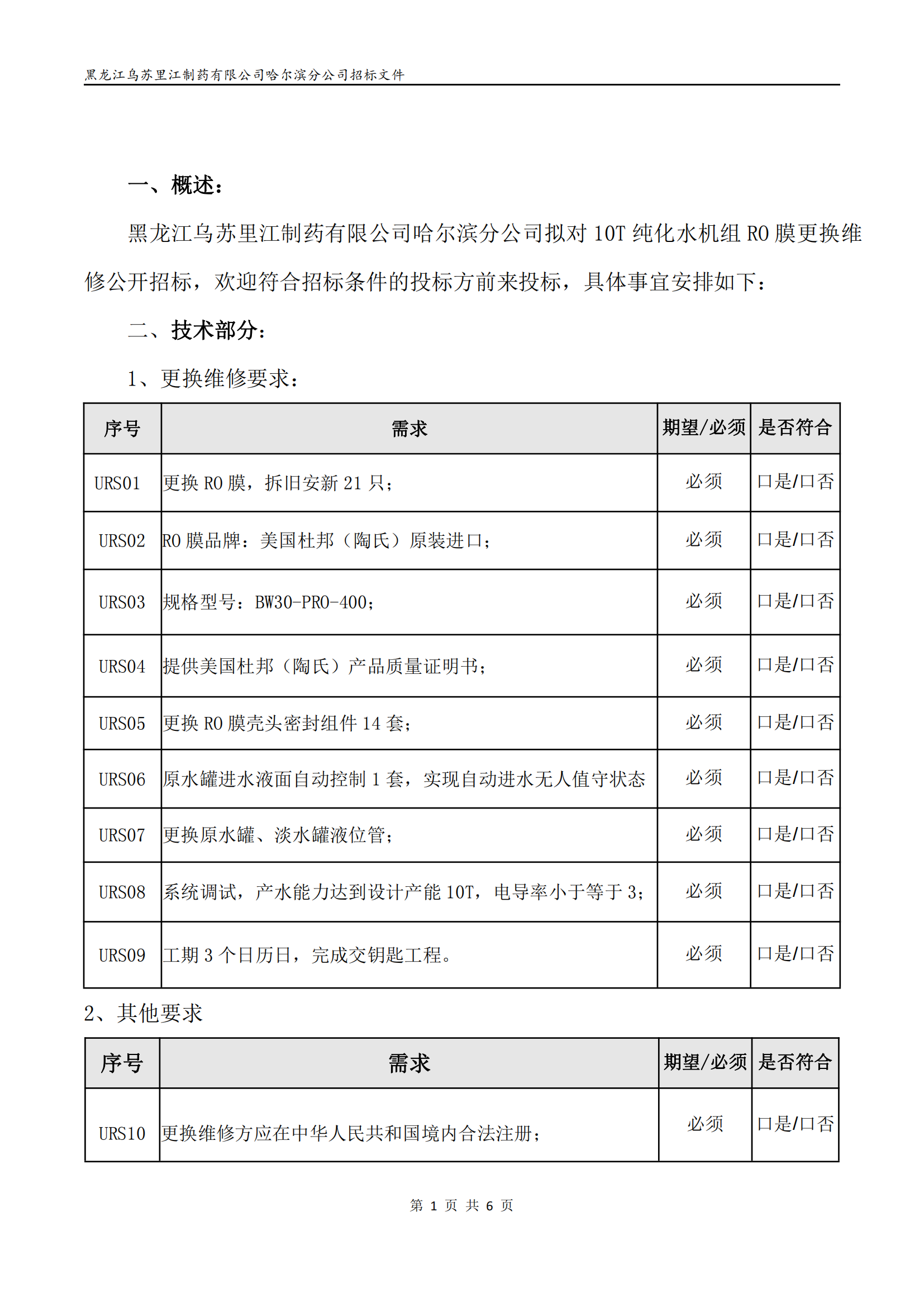 10T純化水機(jī)組RO膜更換維修招標(biāo)公告.pdf